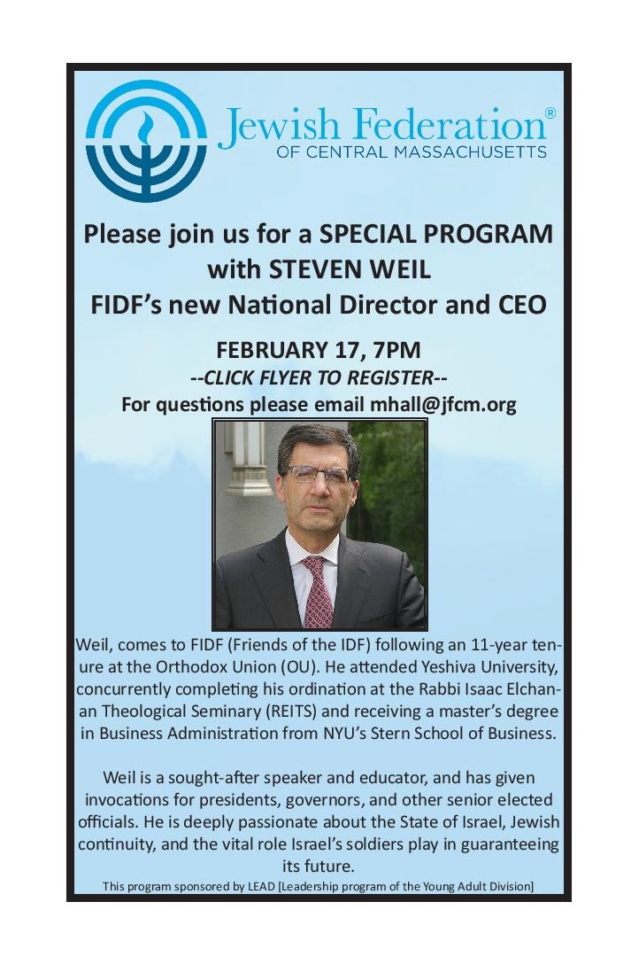 Please join us for a SPECIAL PROGRAM with STEVEN WEIL FIDFs new National Director and CEO